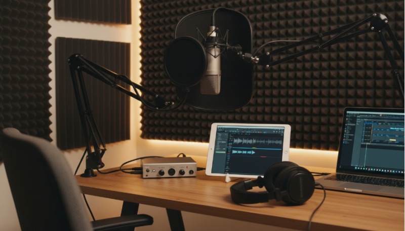 Ни один, даже самый дорогой микрофон, не спасет запись в пустой комнате с бетонными стенами. Перед покупкой оборудования займитесь акустикой помещения. Вам не обязательно делать полноценный ремонт: достаточно создать «вокальную зону». Разместите микрофон в углу, заполненном мягкой мебелью, одеждой в шкафу (с открытыми дверцами) или специальными акустическими панелями. Использование рефлектора (акустического экрана) за спиной вокалиста эффективно гасит отражения от задней стены, делая звук более сухим и собранным. Это самый эффективный способ улучшить качество записи в домашних условиях без больших затрат.