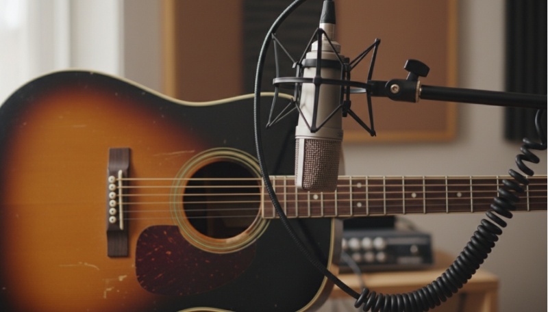 Положение микрофона влияет на результат сильнее, чем его модель. Классическая точка установки — на расстоянии 15–30 см от 12-го лада (место соединения грифа с корпусом), направленная немного вниз в сторону звукового отверстия. Прямое направление в звуковое отверстие часто приводит к избытку баса и гулкости, так как там концентрируются низкие частоты. Смещение микрофона ближе к бриджу добавит яркости и атаки, а смещение к грифу — мягкости и округлости. Обязательно экспериментируйте: попросите гитариста играть, пока вы медленно перемещаете микрофон, слушая изменения в наушниках.