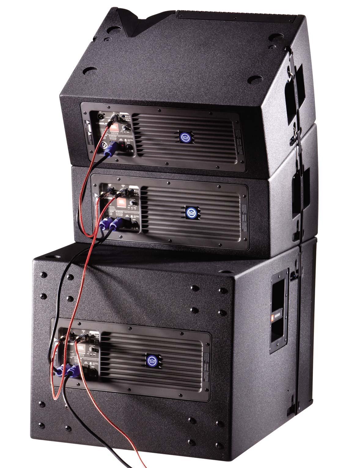 VRX932LAP - компактный (349x597x381мм) и лёгкий (24кг) активный элемент линейного массива, предназначенный для совместной работы с сабвуферами VRX918SP. В составе элемента мощный двухкатушечный НЧ 12" динамик JBL 2262FF Differential Drive® в оформлении бас-рефлекс и три компрессионных ВЧ драйвера JBL 2408J, нагруженных на волновод с направленностью 100°х15°. В заднюю стенку вмонтирован усилительный модуль JBL DrivePack® DPC-2 от компании Crown. Встроенный процессор выполняет все необходимые функции: эквализацию, кроссирование, лимитирование и реализует полный набор защит. Пиковая мощность модуля 1500Вт. Входной сигнал подаётся через разъём XLR f, параллельно с которым подключен XLR m для линкования по входу других активных громкоговорителей. Имеется также аттенюатор (0-16дБ) и переключатель ACS (Array Configuration Selector), с помощью которого производится ступенчатая регулировка ВЧ звена -3дБ/0дБ/+3дБ для ближнего/среднего/дальнего поля.